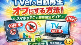 TVerの自動再生が勝手に始まって困っていませんか?本記事では、スマホ(iPhone・Android)やPCでTVerの自動再生をオフにする方法を丁寧に解説。さらにギガやバッテリーの節約効果、便利な視聴テクニックもご紹介。2026年最新版の完全ガイドです!